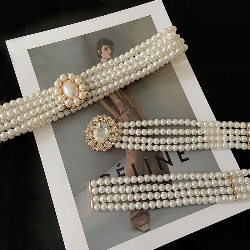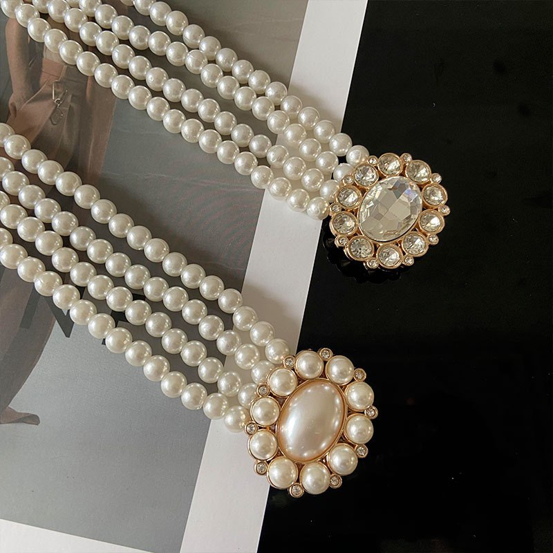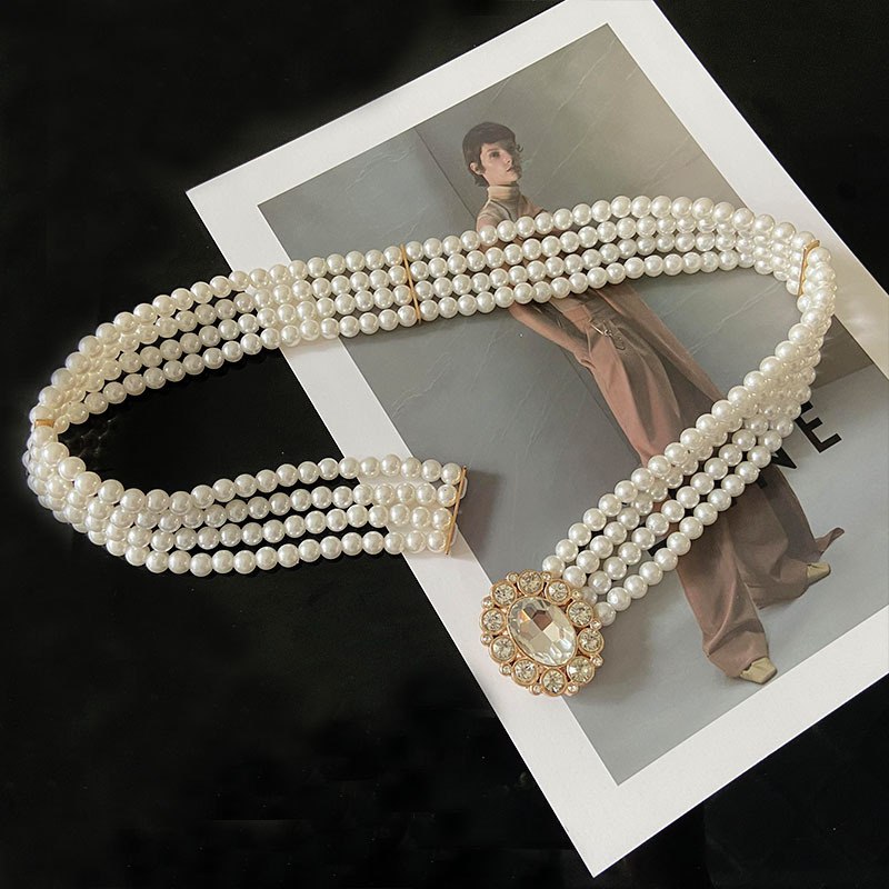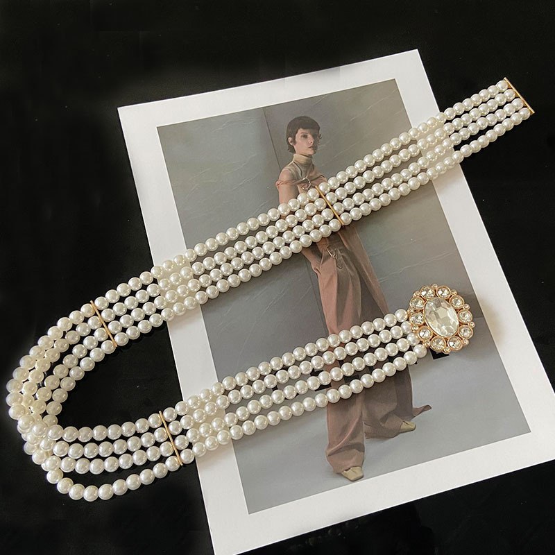 Be the first to review “4-Row Pearl Chain with Flower Crystal Belt”